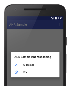 - 일정 시간 충분한 속도로 응답하지 않는 경우 발생. Main Thread(일명, UI Thread)가 일정시간 동안 Hold되면 발생함.